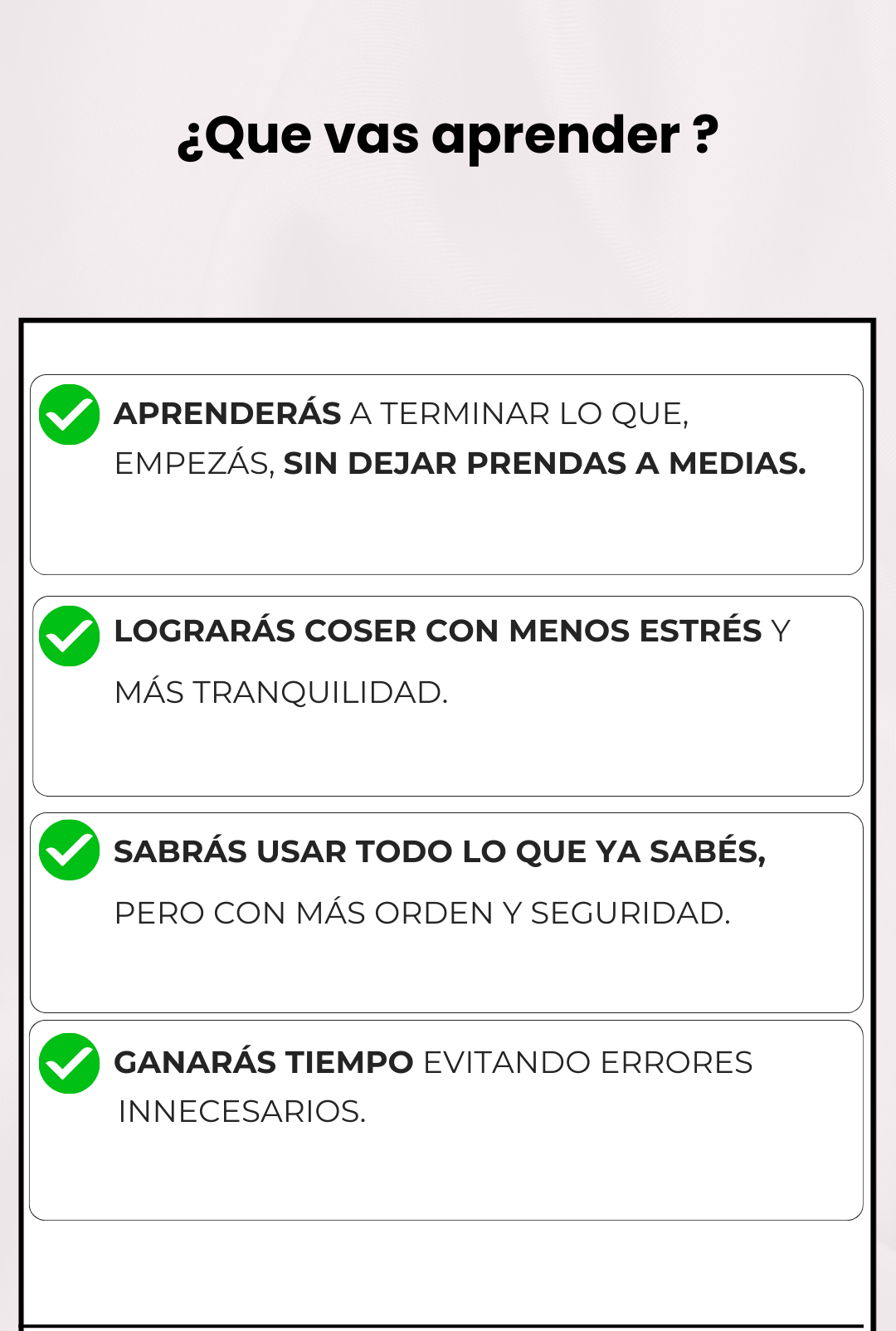 Está pensada para que aprendas a usar tu máquina familiar paso a paso, desde cero, y empieces a crear prendas reales que podés usar, regalar o vender.